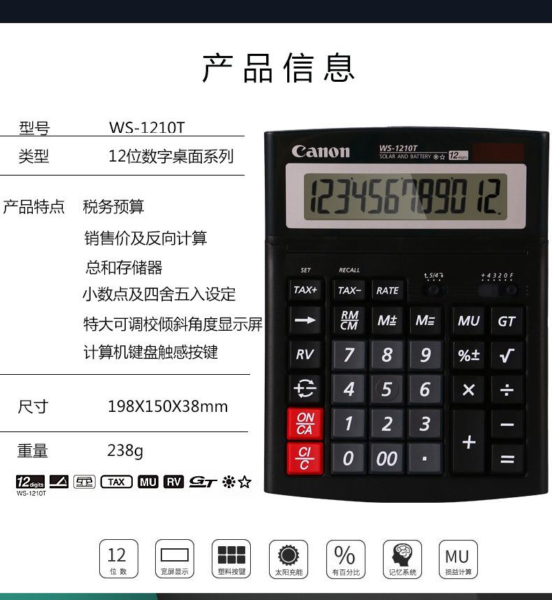 • 商品名称:佳能 WS-1210T 桌面型计算器