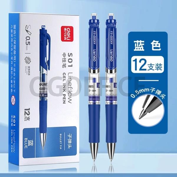 • 商品名称:得力 S01 0.5mm经典大方中性笔/水笔 蓝色 12支/盒