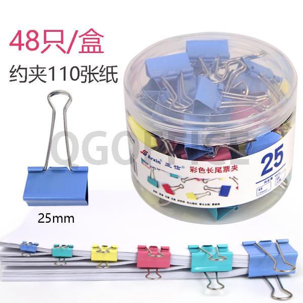 • 商品名称:亚信 25mm彩色长尾票夹 48只/桶
