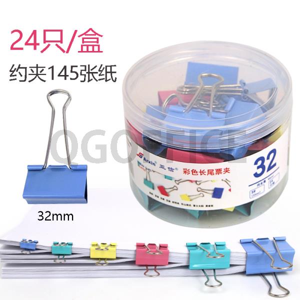 • 商品名称:亚信 32mm彩色长尾票夹 24只/桶
