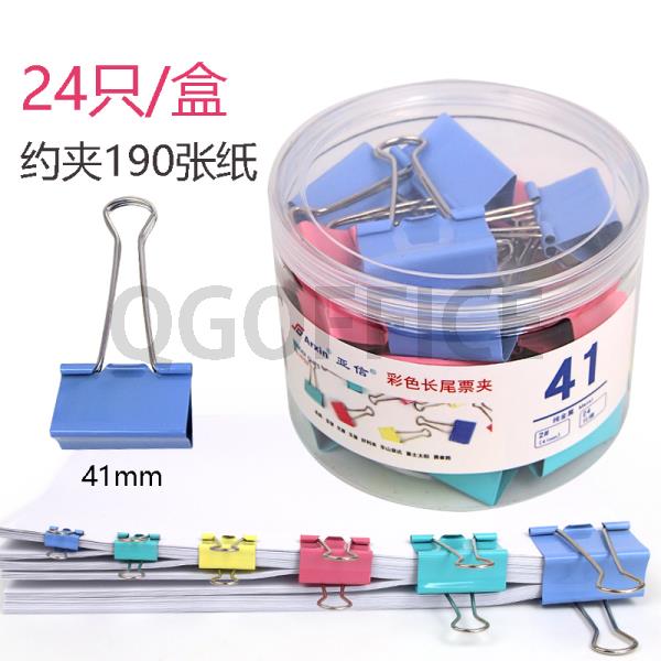 • 商品名称:亚信 41mm彩色长尾票夹 24只/桶