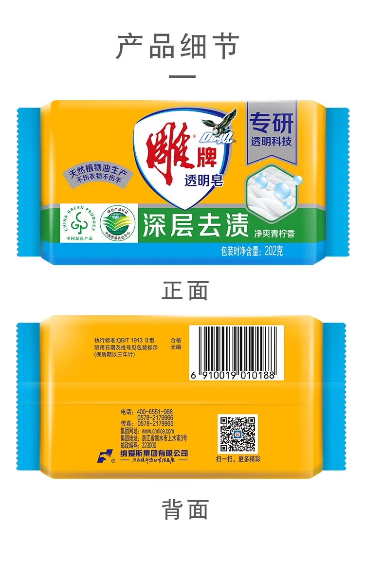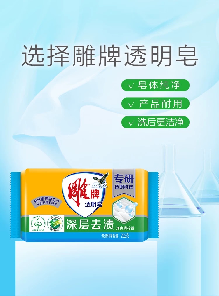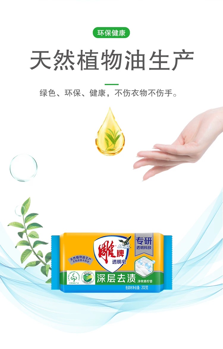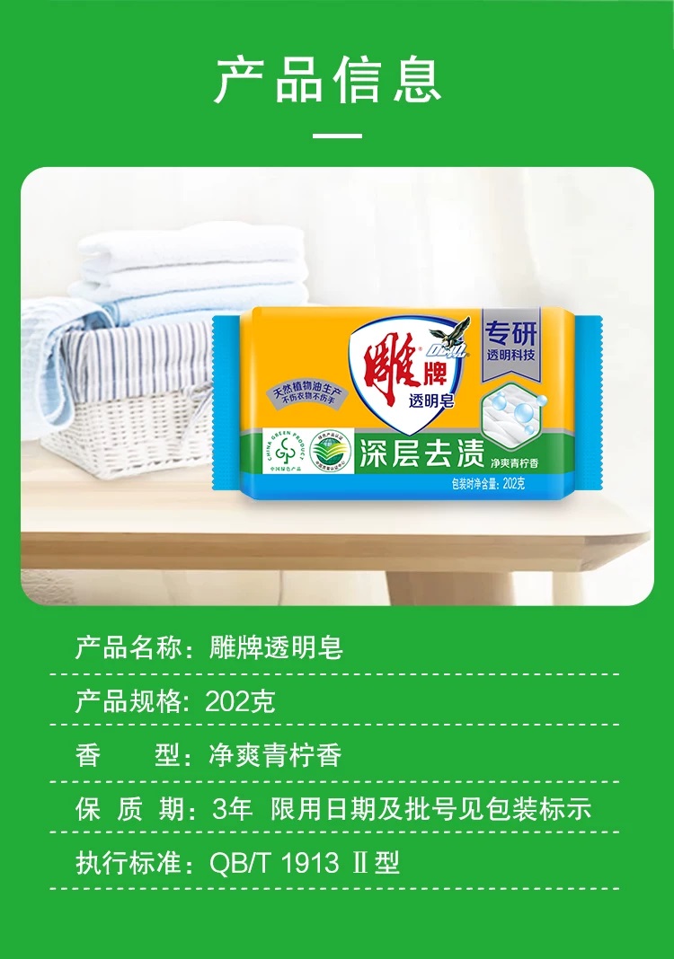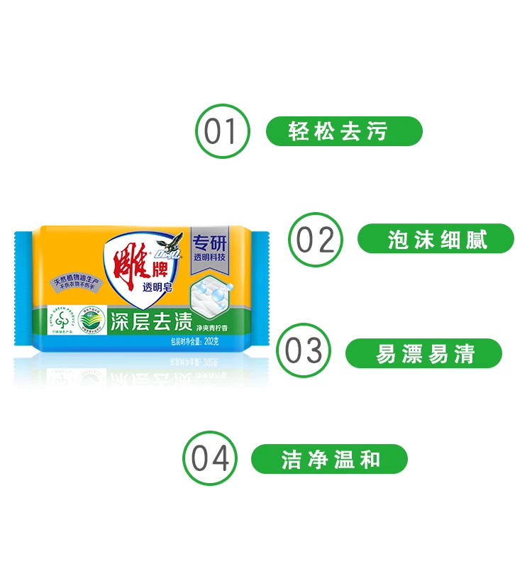 • 商品名称:雕牌 透明皂 202g 独立包装