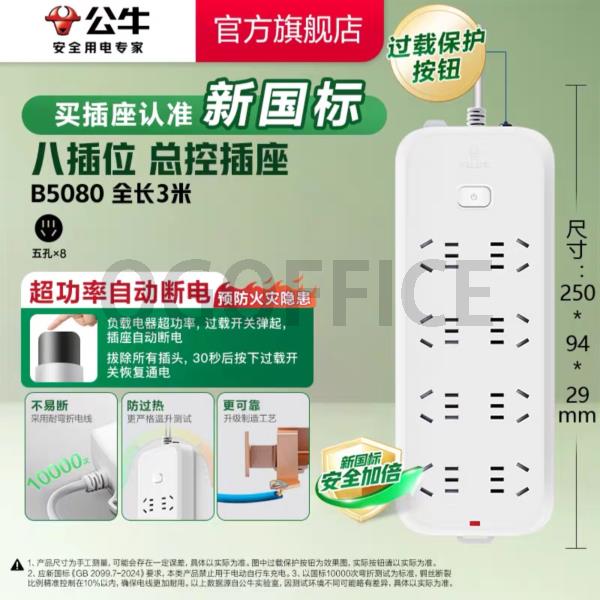 • 商品名称:公牛 GN-B5080 八插位三米插排 五孔×8